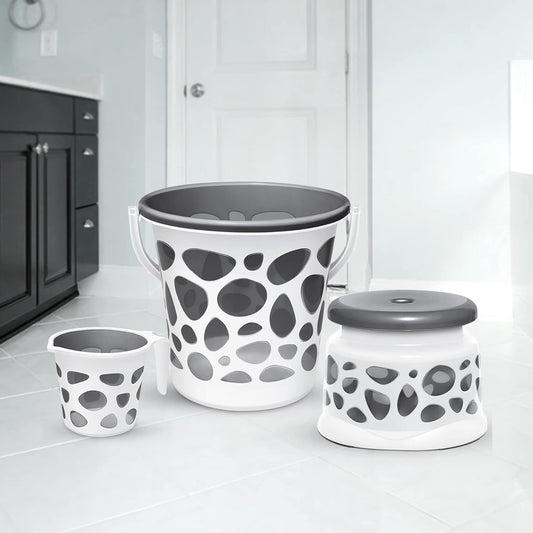 MILTON Duplex Spa 3 Piece Set, Grey | 25 litres Bucket with Mug & Stool | Bathroom Accessory Set(Plastic)