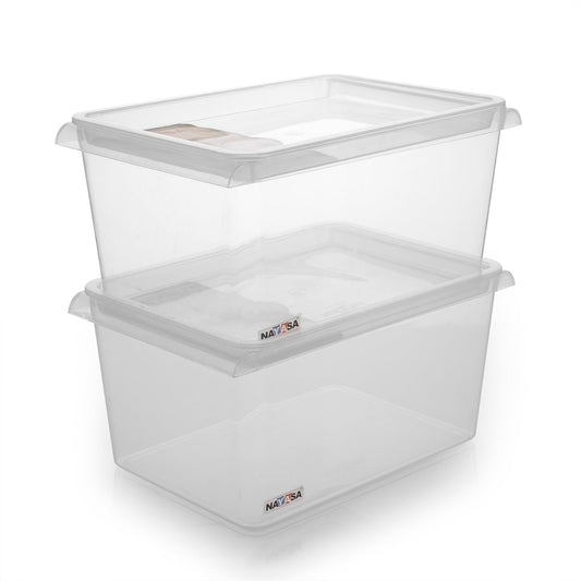Nayasa Stack N Store Set Of 2 | 5 Ltrs | Plastic Storage Boxes With Lid | Side Handle | Stackable Boxes | Can Be Used For Multipurpose Storage | Strong And Durable Quality | Clear