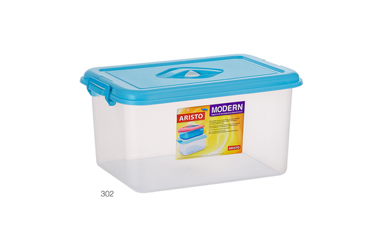Aristo Modern 302 Multipurpose Storage Box Container – 28L | Transparent Plastic Container with Blue Lid & Lock Clips | BPA-Free, Durable & Stackable