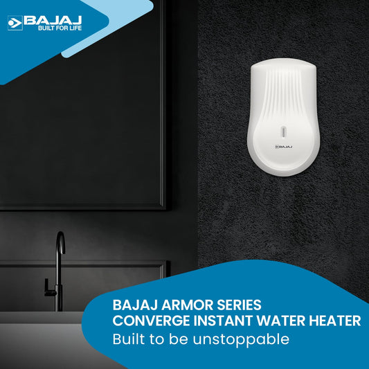 Bajaj Armor Series Converge 3L 3KW Instant Water Heater For Home|Ner Stick Heating Element|Withstand 6 Bar Pressure|Shock Resistant & Rust Proof|Withstand 4.5KV Surge Voltage|4-Yr Warranty|White