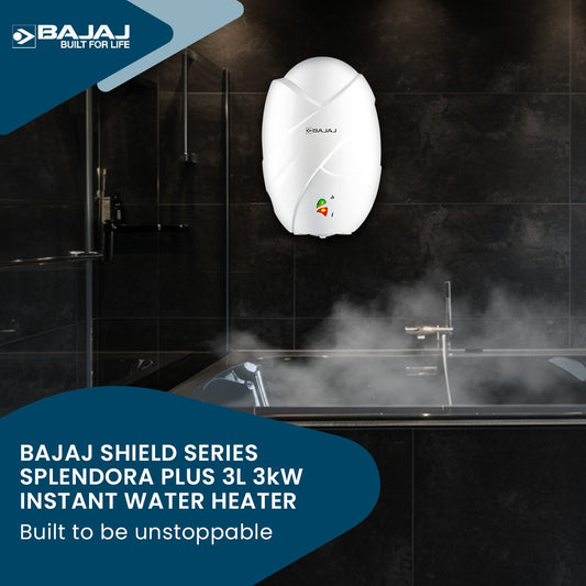 Bajaj Shield Series Splendora Plus 3L 3KW Vertical Instant Water Heater For Home | Geyser For Bathroom & Kitchen | High Grade SS Tank | Copper Heating Element | 4-Yr Product 6-Yr Element 5-Yr Tank Warranty 【White】