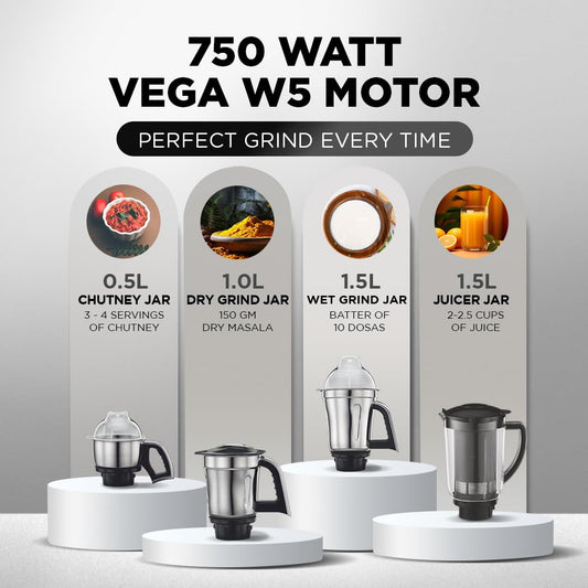 Maharaja Whiteline Turbo Prime Elite 750W Elite Mixer Grinder, Black