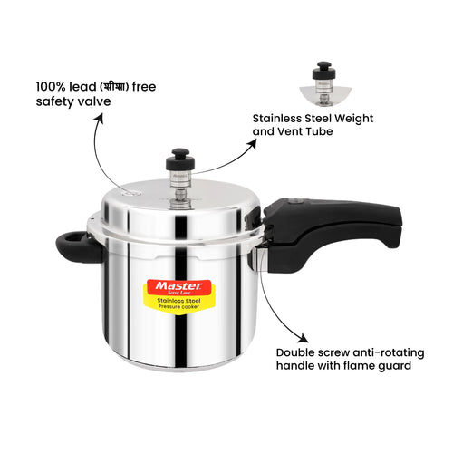 Master Magnum Trio Stainless Steel Outer Lid Pressure Cooker Combo - 5L + 3L + 2L Pan - Induction Base