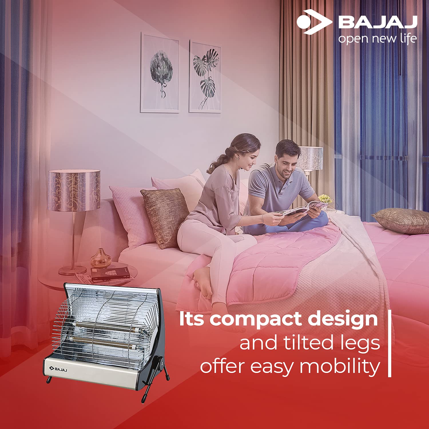 Bajaj Deluxe 2000 Watts Halogen Room Heater | ISI Approved | Adjustable Thermostat | 2 Heat Settings | 2 Yr Warranty