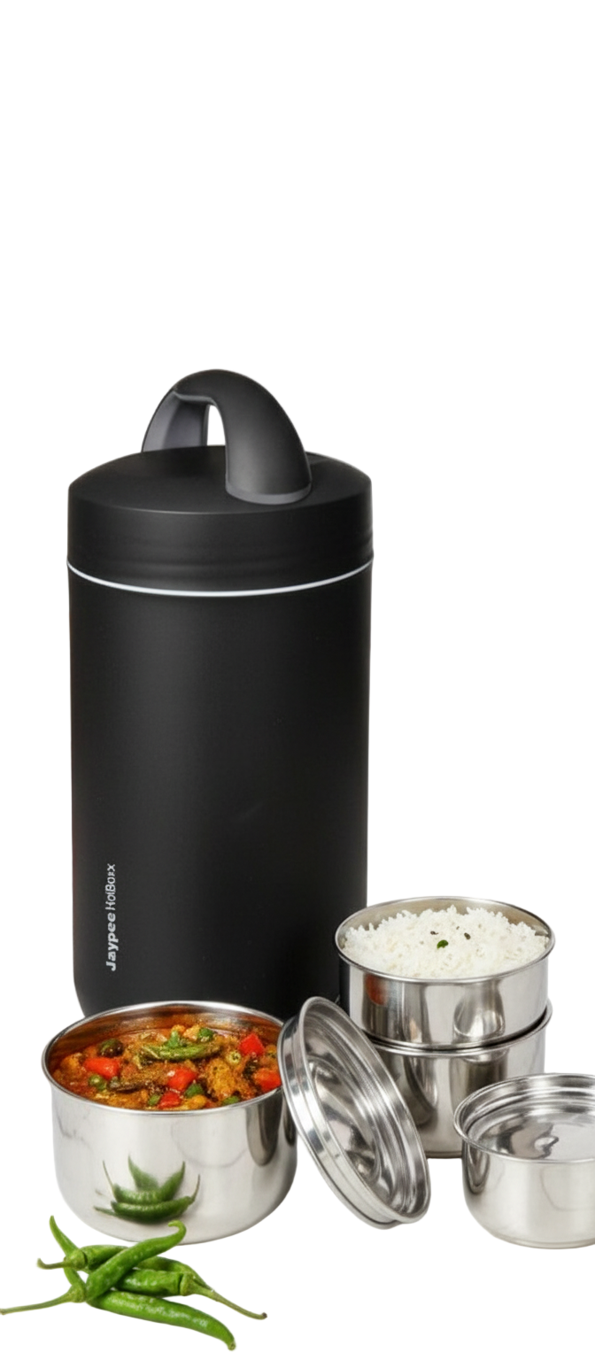 Rediscover the joy of a hot, hearty, and healthy homemade lunch with the Jaypee HotBoxx Insulated Food Carrier. Designed for the modern professional, student, and traveler, the HotBoxx is the ultimate solution for carrying a complete meal without any fuss. Its tagline, "Home away from home," perfectly captures the experience of opening up a warm, delicious meal, no matter where you are.