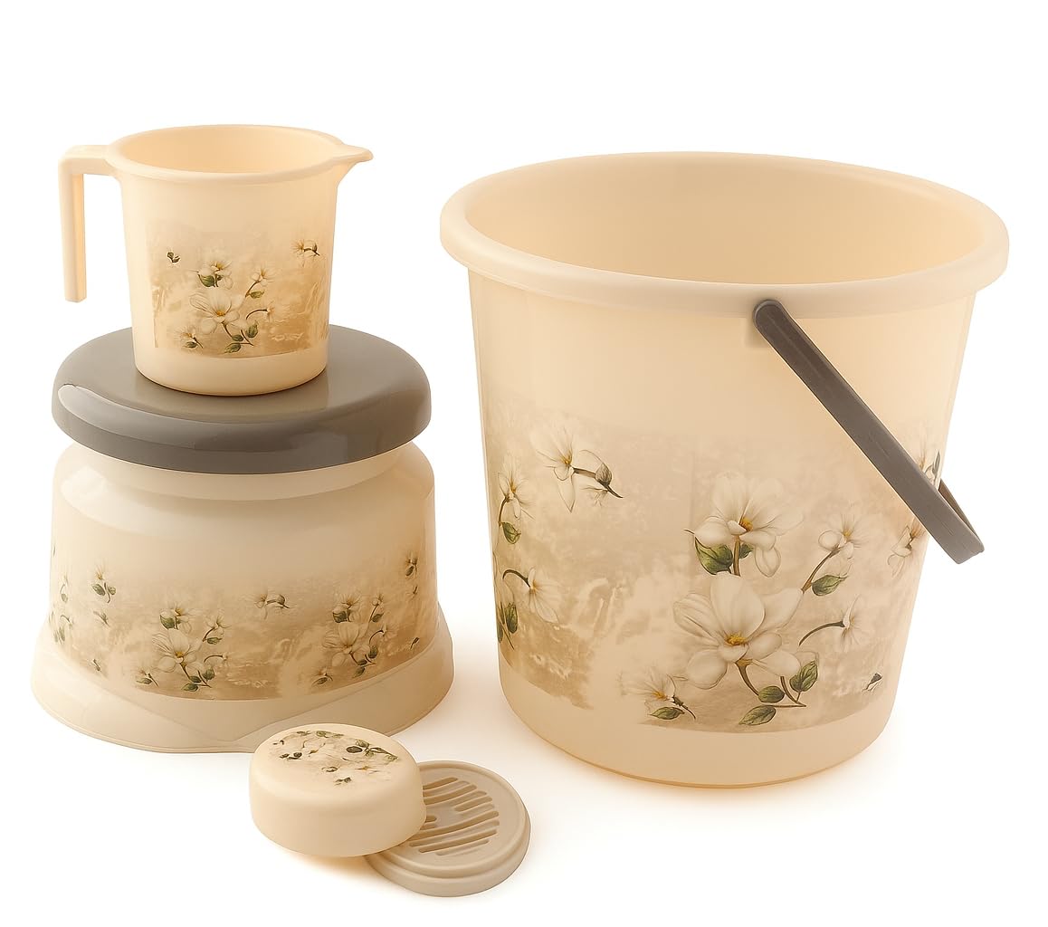 - Complete 4-Piece Bathroom Set: This set includes a 20L bucket, 1.5L mug, 508 stool, and soap case, covering all essential bathroom needs. It provides convenience and organization for daily bathing routines, making your bathroom functional and tidy.